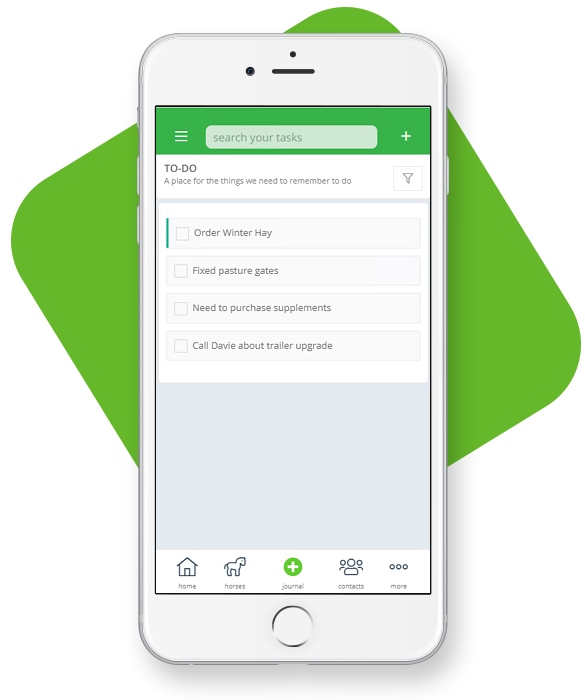We added a To-Do tracker into the app so you’ll finally remember all those things you have to do around the ranch. Whether you’re fixing things, or just need to purchase some more hay and you need a reminder, The Equestrian App has you covered.